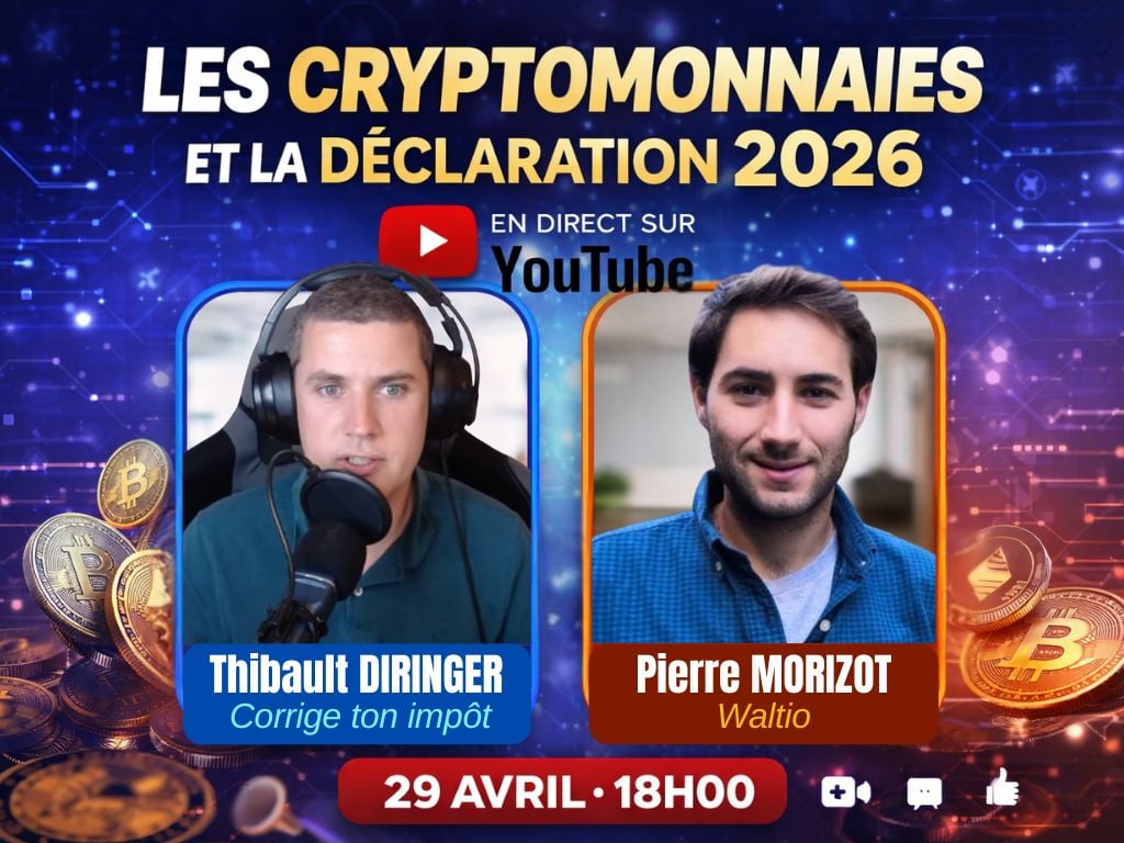 Mercredi 29 avril à 18h00, on passera une heure sur le thème : Cryptomonnaie 2026 et déclaration d’impôt.