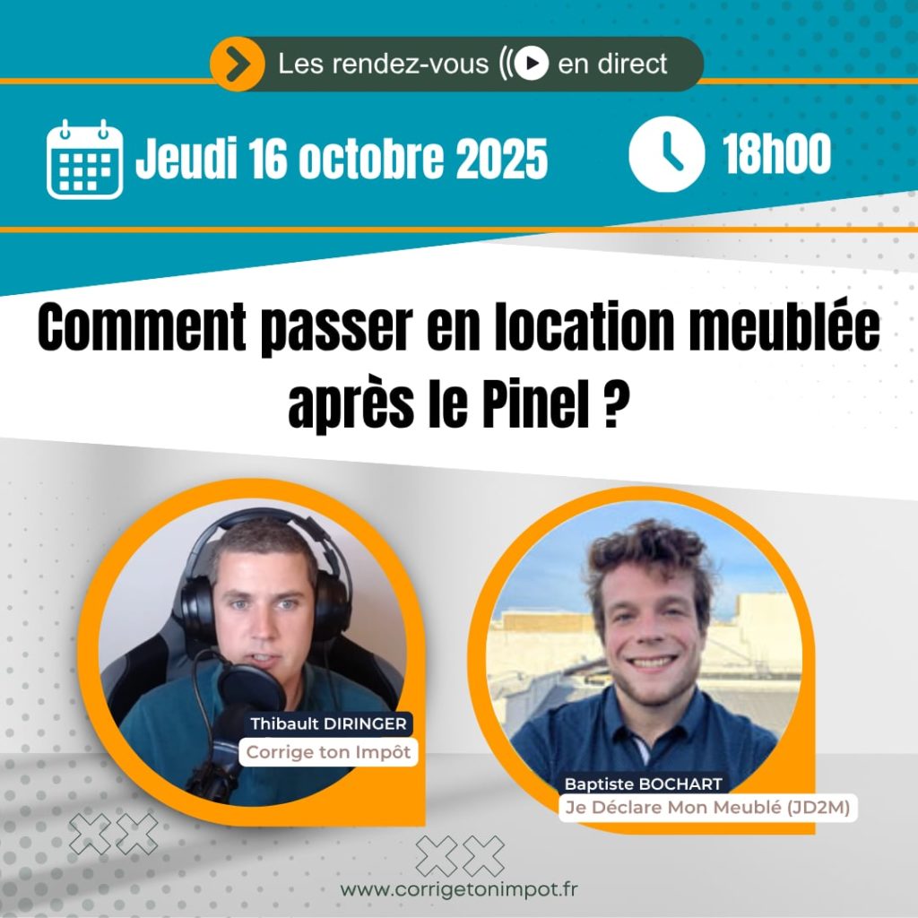 Durant cette conférence, nous allons évoquer le passage en location meublée lorsqu'un Pinel arrive à son terme. À l'origine, la conférence était juste pour les acheteurs du Pinel, mais en réalité, elle concerne toute personne qui loue un bien vide. Le thème pourrait tout aussi bien être : comment basculer en meublé après avoir loué vide quelques années ? Je serais accompagné du juriste du site JD2M alias "jedéclaremonmeuble.com" : Baptiste BOCHART. Cela permettra au mieux à vos questions et d'enrichir le contenu.