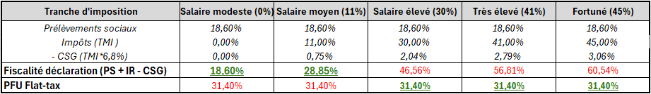 Il faudra atteindre la tranche fiscale à 30% pour que la Flat-tax soit attractive via-à-vis de la déclaration d’impôt si vous gardez vos titres plus de 2 ans.