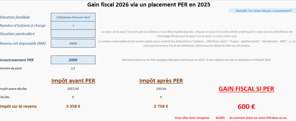 Simulateur Excel : Quelle baisse de l’impôt 2026 si vous placez sur un PER fin 2025 ?